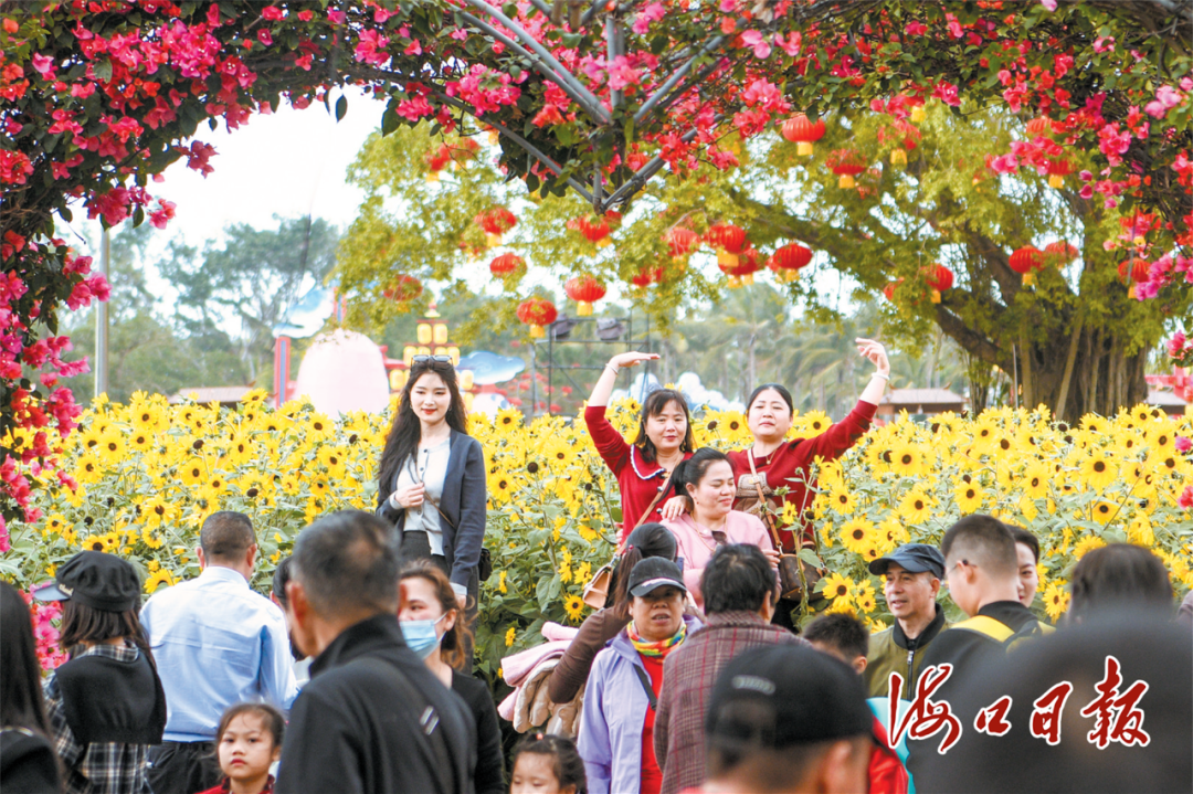 1月29日,海口万绿园内的向日葵花海吸引不少人驻足留影。海口市融媒体中心记者 杨鹤 摄