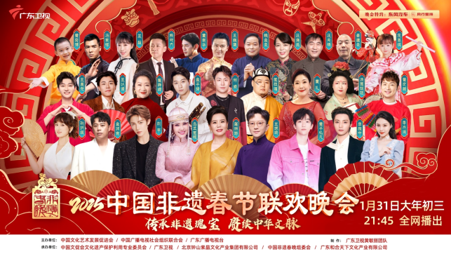 传承非遗瑰宝,赓续中华文脉!由东风汽车旗下风行星海品牌特约播出的《2025中国非遗春节联欢晚会》,将于1月31日大年初三晚9:45全国上新,广东卫视邀您共赏。