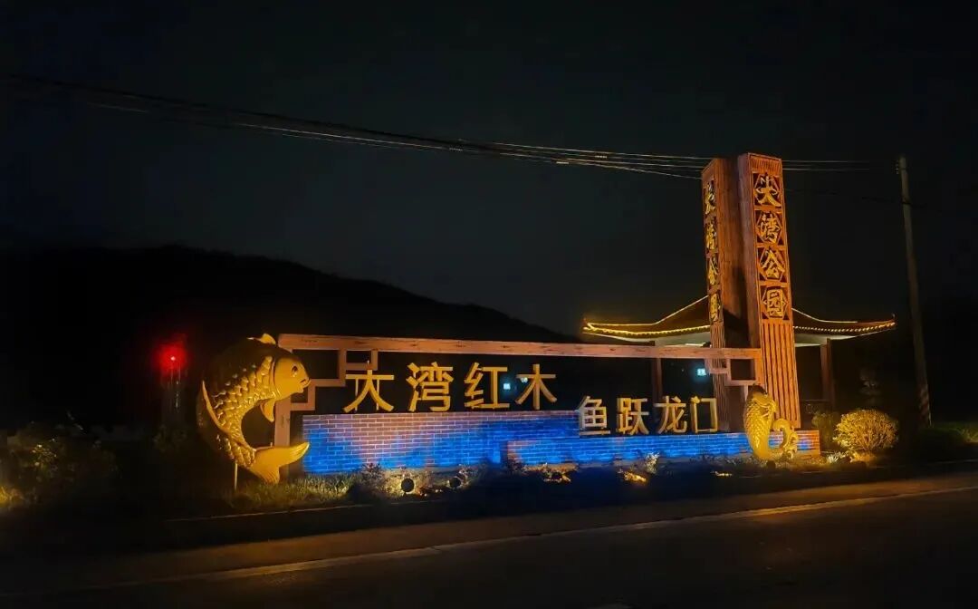 ▲ 大湾镇美丽圩镇入口处的灯光夜景。邓达荣 摄