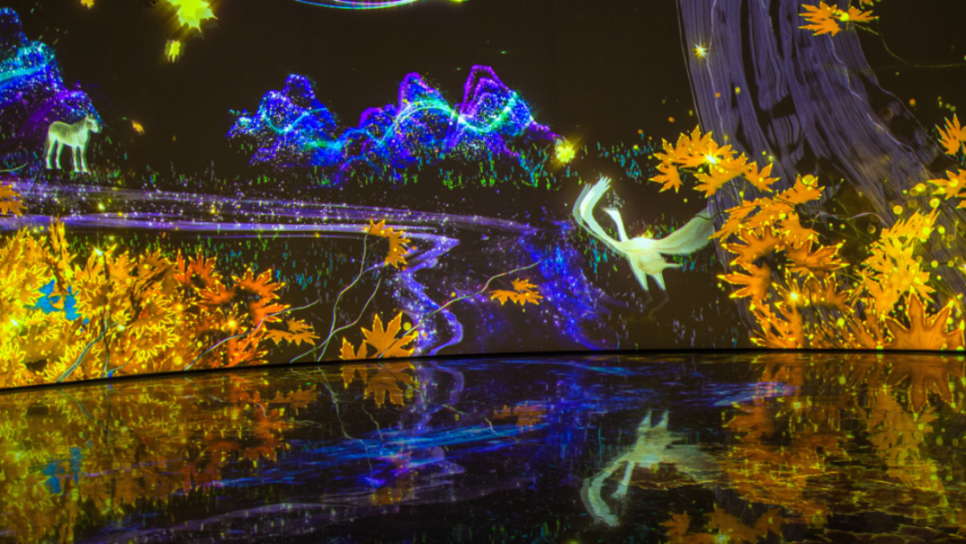 从特展出来以后,建议马上冲到B2层“星空画意”数字艺术厅,一场免费光影艺术展等着你,大写的震撼!
