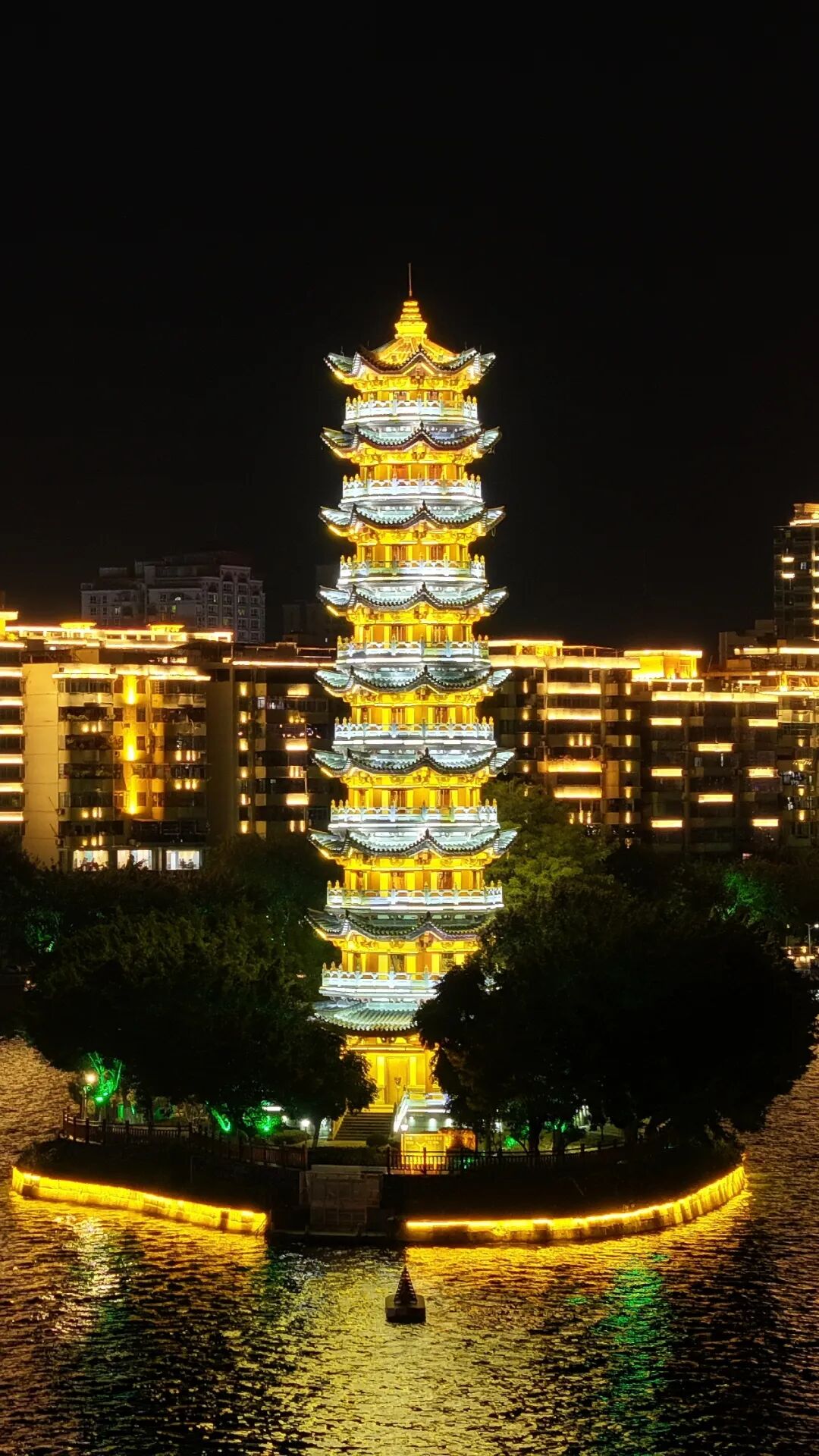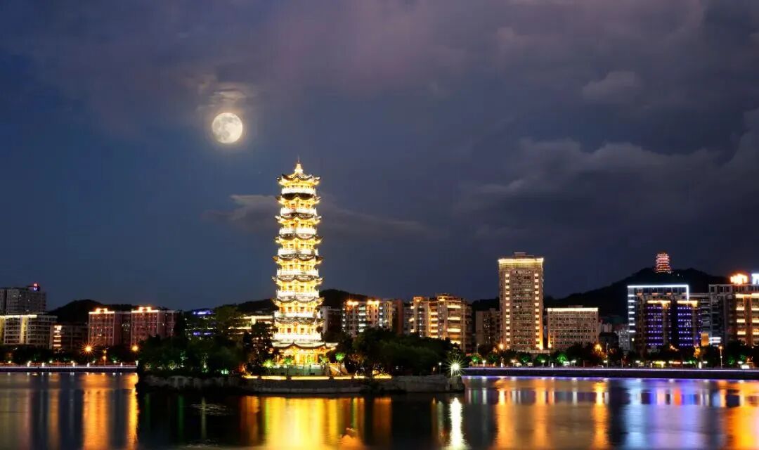 华灯初上之际,通天塔通体明亮,与两岸灯光长廊交相辉映,熠熠生辉,每每亮灯之时,就是韶城一道靓丽的风景。