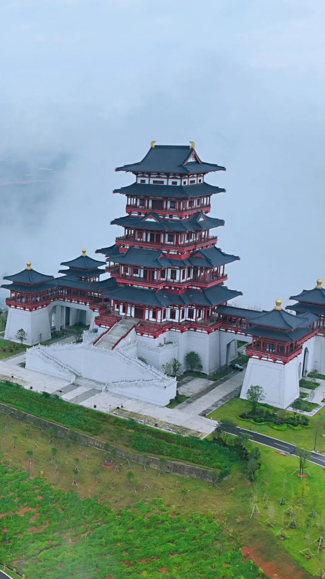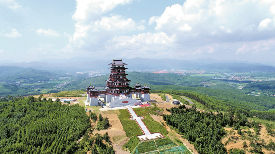 通天塔于2011年7月动工重建,2012年9月竣工落成,塔高39米,采用宋代风格的八角九层塔样式,塔身恰似文笔耸立。