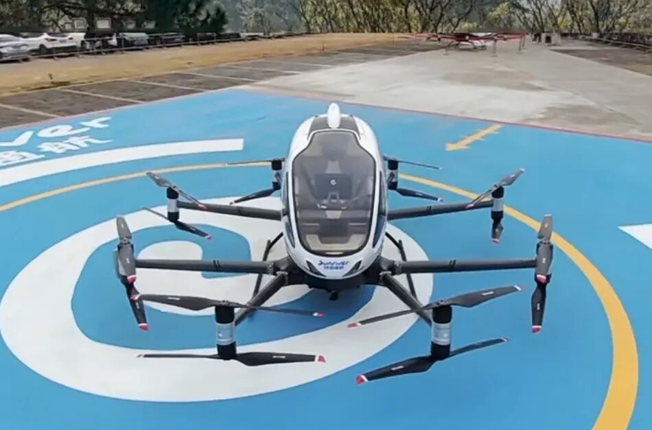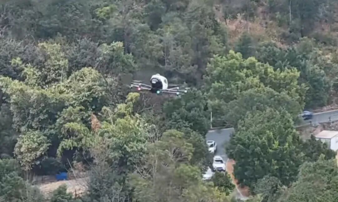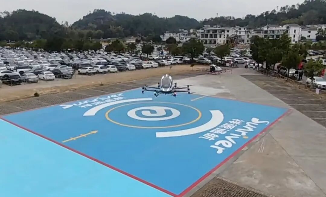 在丹霞山停车场,一架电动垂直起降无人驾驶载人航空器腾空而上,升到一定高度后在空中绕飞一圈,“俯瞰”丹霞美景。这一航空器,是全球首个且目前唯一集齐型号合格证、标准适航证和生产许可证的载人电动垂直起降航空器。