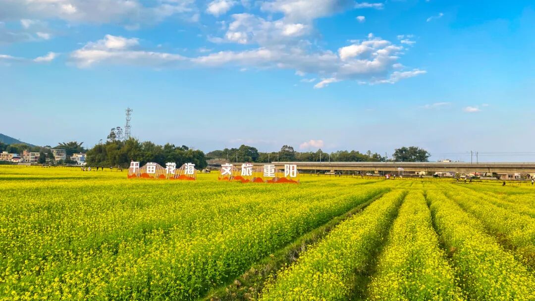 武江区重阳镇水口村的千亩油菜花也在春节期间盛开,勾勒出一幅金灿灿的乡村图景,吸引大量游客前来。游客们有的身着情侣装、有的穿上汉服,在金色花海中留下欢乐瞬间。