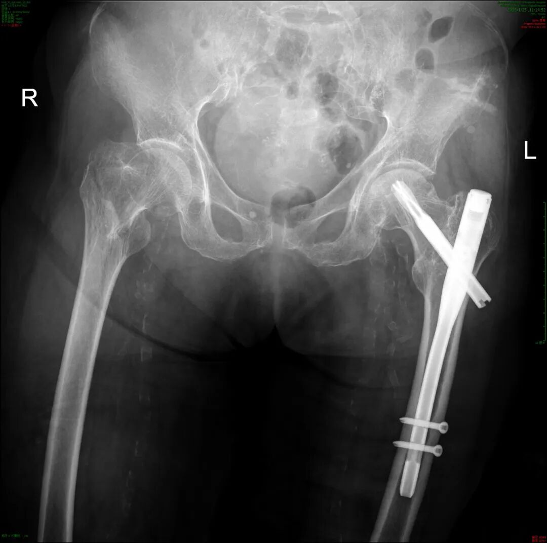 余新平副院长医疗团队随即为其开通了老年人髋部骨折绿色通道,并确定了右股骨粗隆间骨折闭合复位髓内钉内固定术的手术方案(InterTAN)。