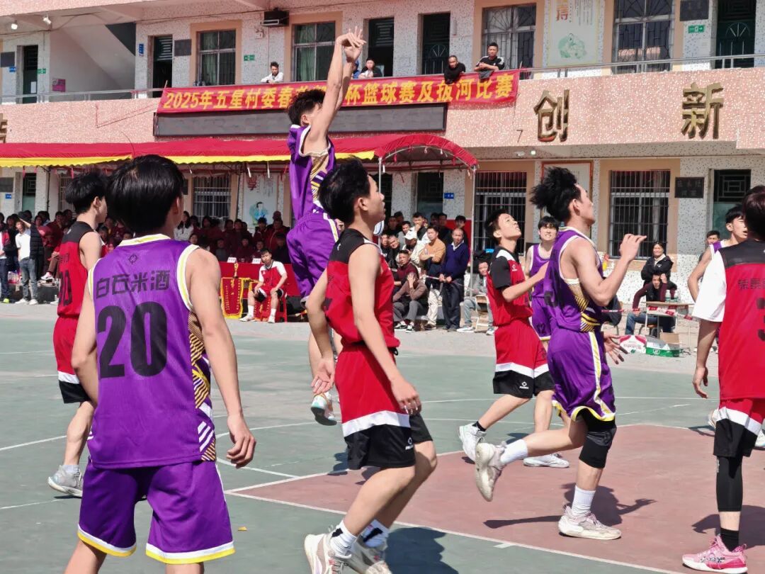 篮球场上,由本村各自然村篮球爱好者们组成的队伍身着统一服装,个个精神抖擞,整装待发。随着裁判员一声哨响,比赛正式开始。球员们在场上你追我赶、配合默契,时而突破上篮、时而精准远投,赢得场下观众的阵阵掌声和欢呼声。