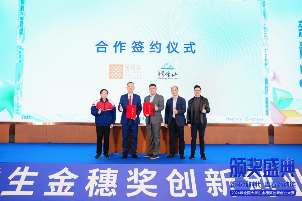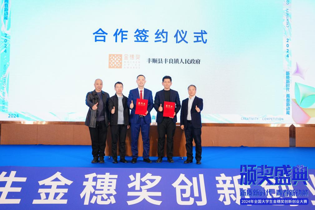 赛事自开展以来,整合“政、校、行、企、村”各方资源,成为高校服务乡村振兴战略、助力企业品牌年轻化与社会公益推广的载体。颁奖盛典上,金穗奖与广州市帽峰山景区、丰顺县丰良镇、三嘉乐贸易(广州)科技有限公司、草图里(广州)科技有限公司展开合作签约。这也为高校大学生提供了一个在创新创意中实践增本领、长才干的舞台,有效推动资源互联互通,激励大学生互学互鉴互进步,为推动行业发展和社会进步贡献青春力量。