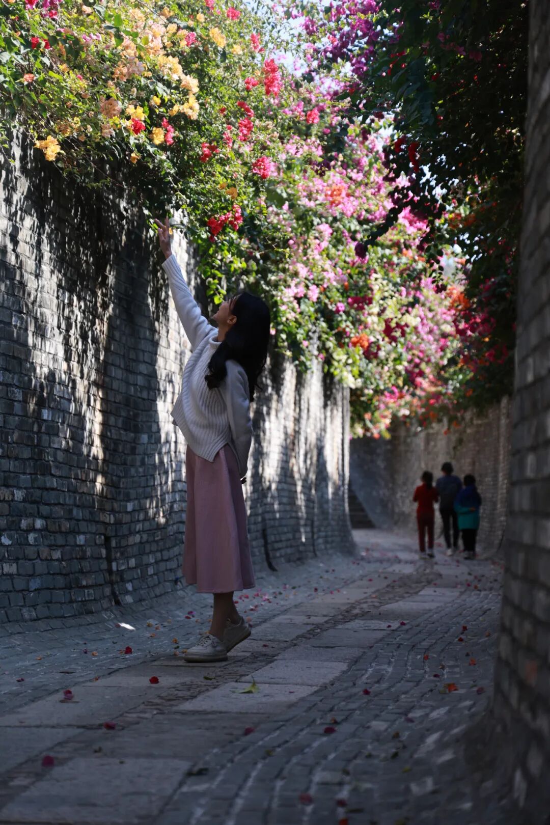 热烈的三角梅与古朴的岭南建筑交相辉映