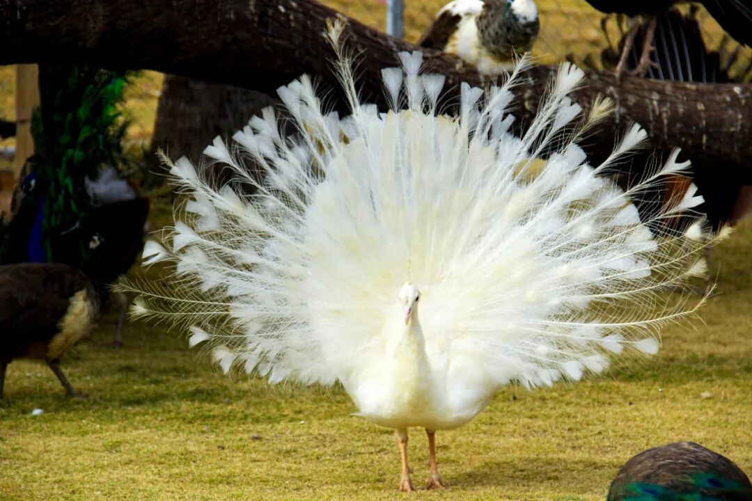 和优雅的蓝孔雀亲密互动