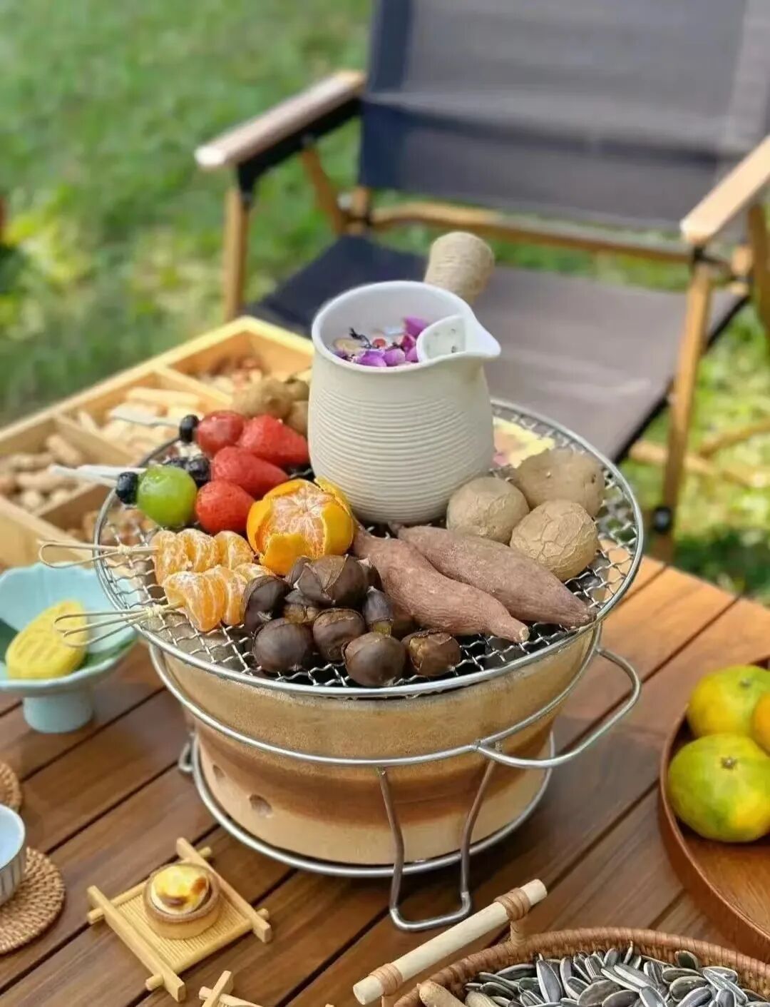大人们围炉煮茶,享受悠闲时光