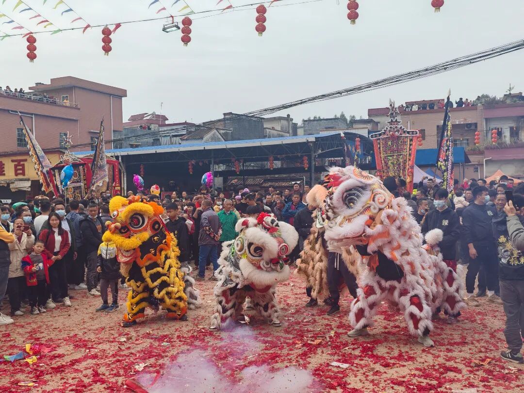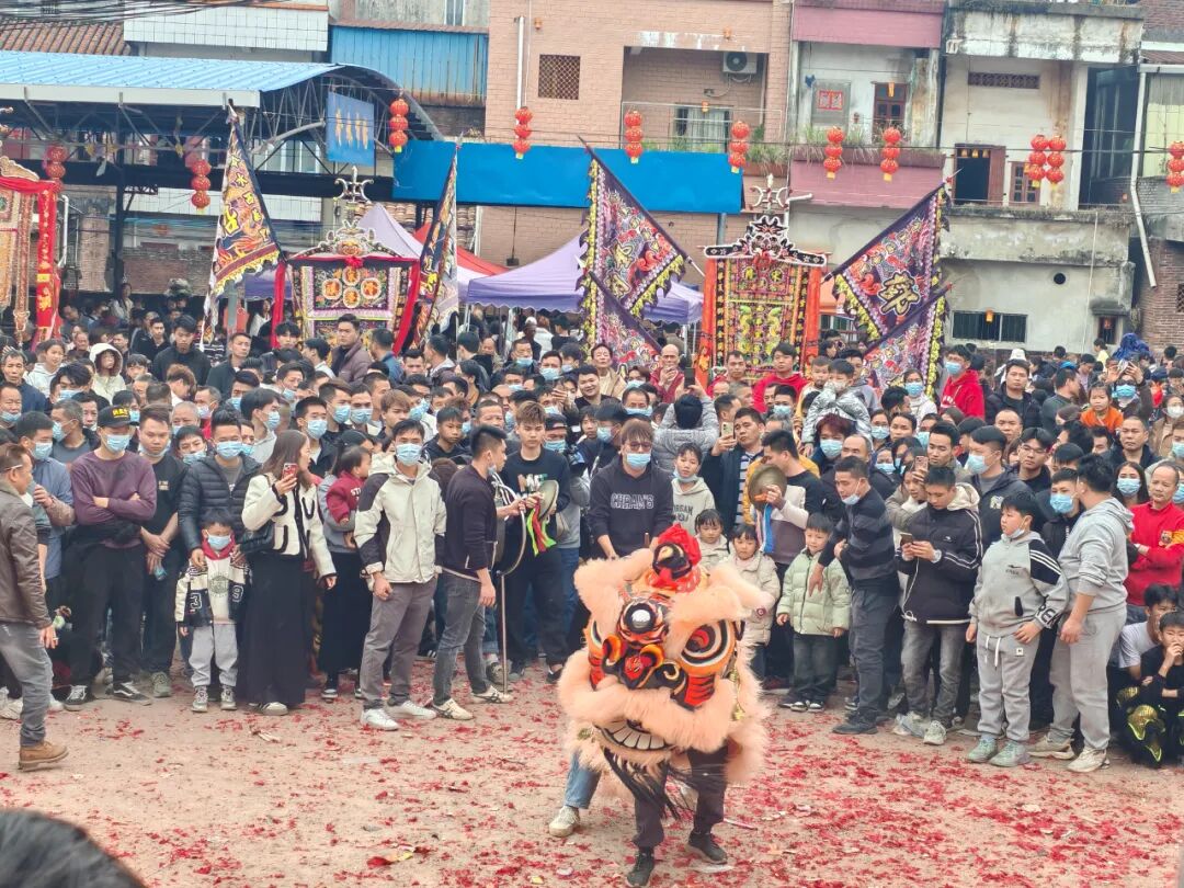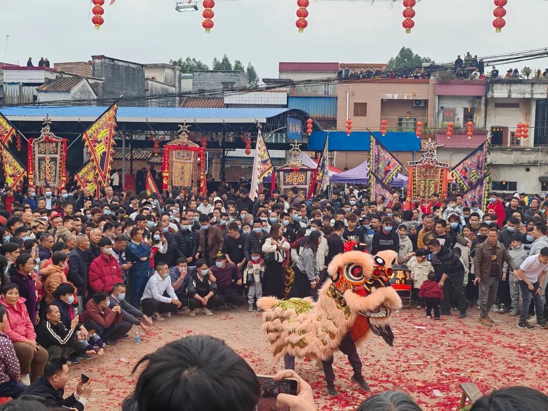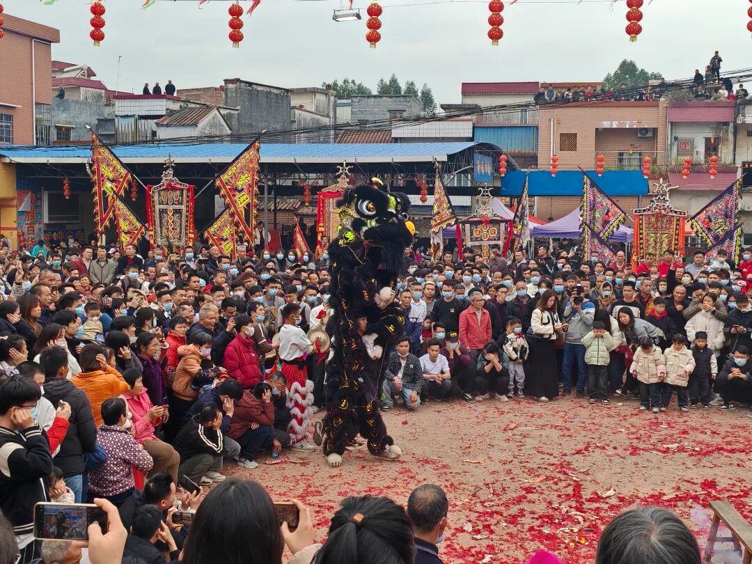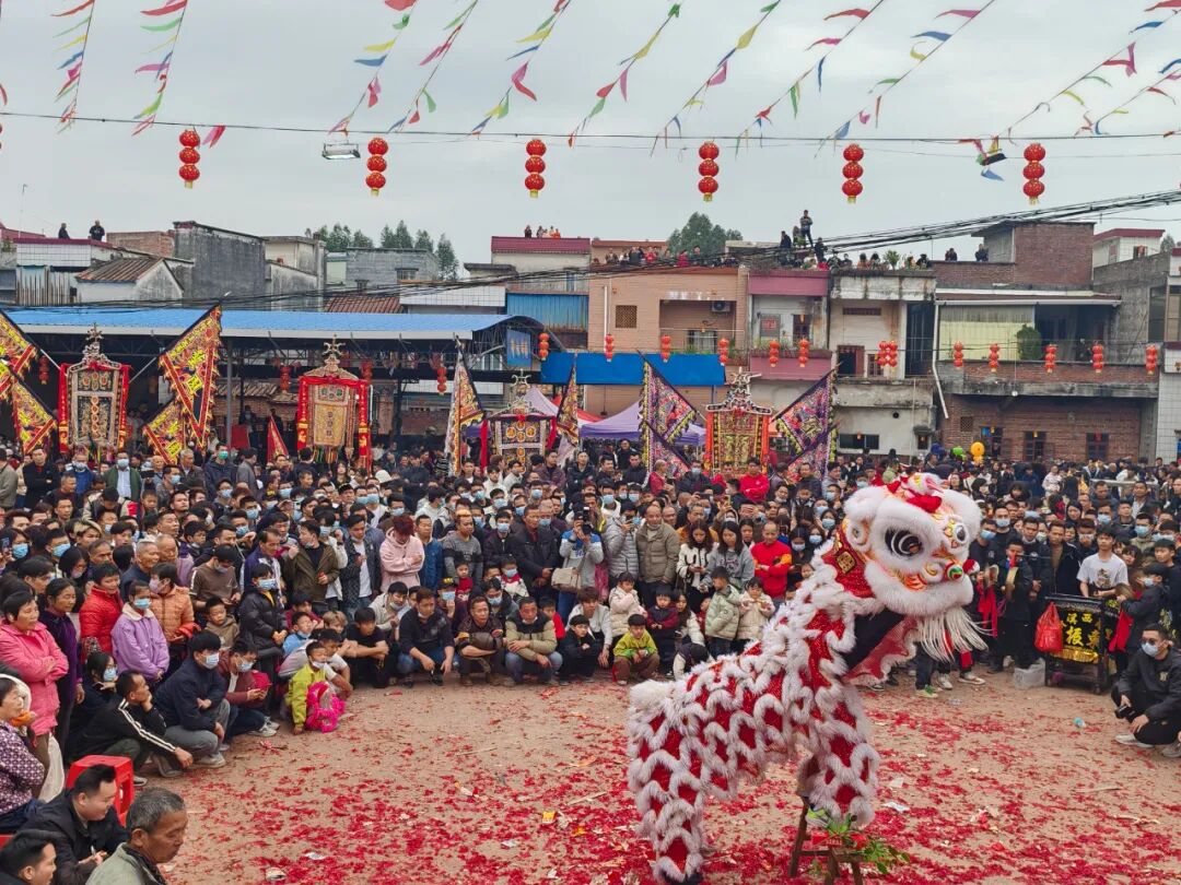 村里张灯结彩、锣鼓喧天、醒狮送福、载歌载舞、热闹非凡,瞬间点燃过年的热烈氛围。