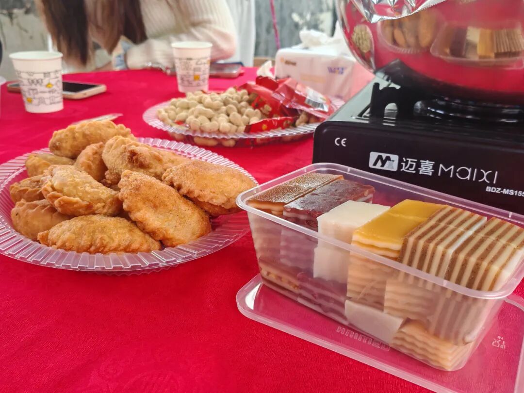 酥香可口的油角,甜而不腻的煎堆,口感细腻的糕点,咬上一口,一场味觉盛宴在口齿中散开,色香味俱全的茶果让客人们赞不绝口。