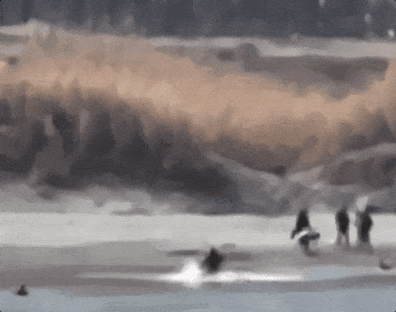 一位男子骑着一匹白马冲入水中救人