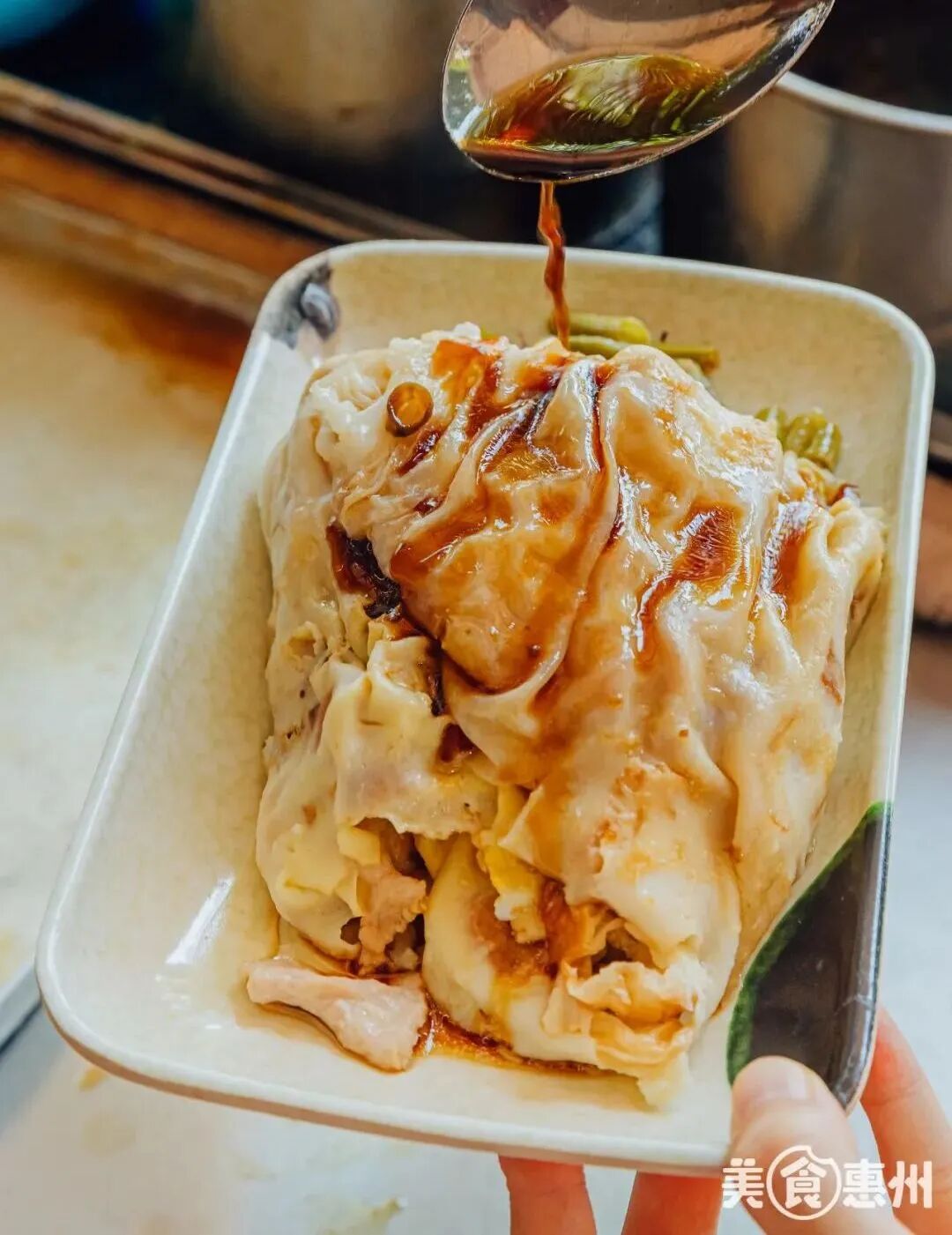 特色:米浆铺在布上蒸熟,裹入鸡蛋、牛肉或虾仁,淋上酱油,细腻滑嫩。
