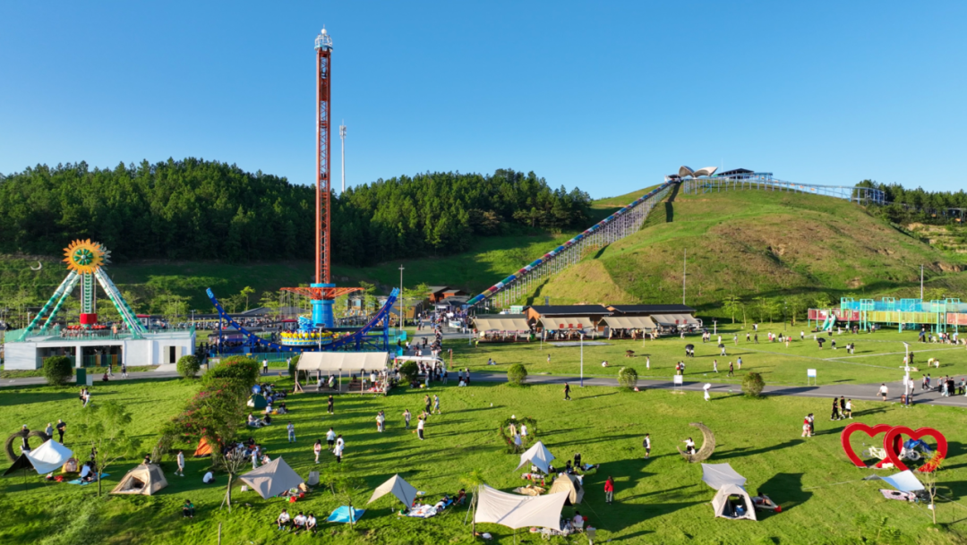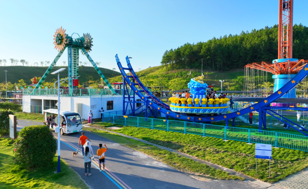 家长可以与孩子一起打卡园区的经典项目:高空玻璃漂流,好玩且不湿身;机动王国里的大摆锤和碰碰车;VR数字馆里的裸眼3D轨道影院;无动力乐园里的天空玻璃步道与水上拓展。这些都是亲子互动的热门项目。