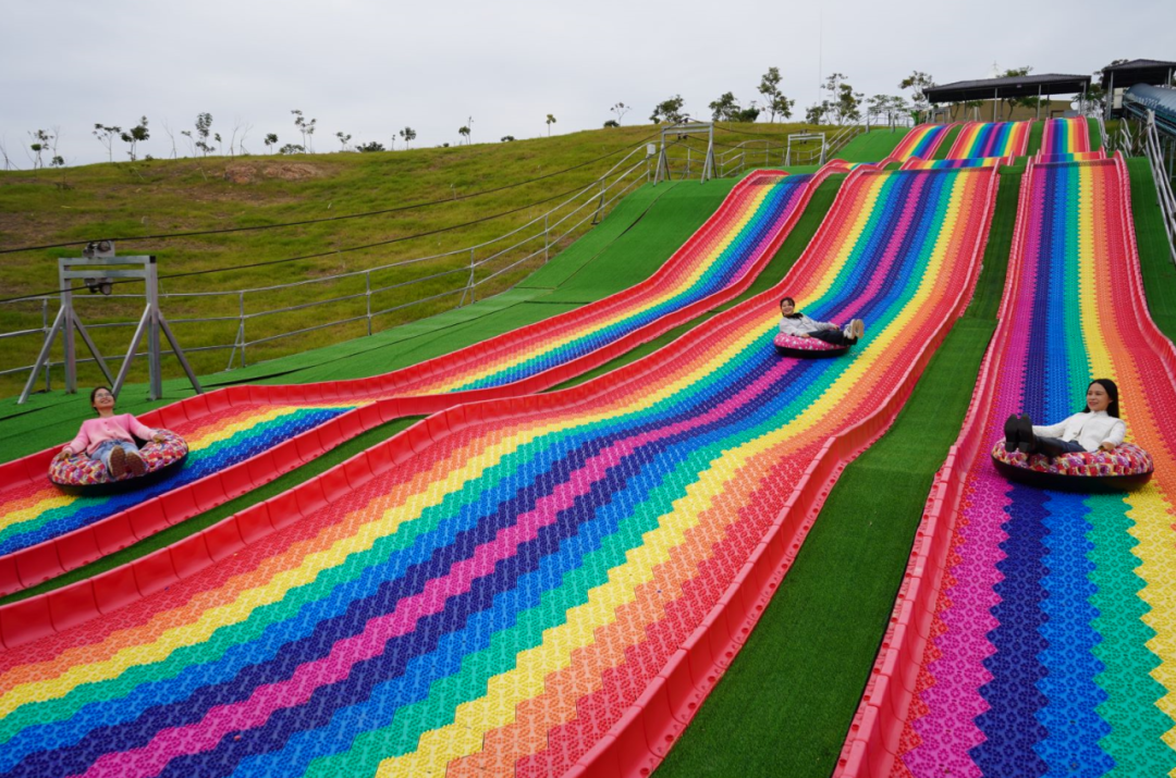 身高低于1.2米的小朋友们,可以在无动力区开启沉浸式打卡体验,还能在充满童话色彩的淘气堡尽情玩耍。在这里,有锻炼体力与勇气的重走长征路体验项目、三角形大型攀爬网、多彩滑世界、巨无霸六角魔网,还有大片的蹦蹦云。孩子们来了就不想走,让他们畅玩一整天完全没问题!