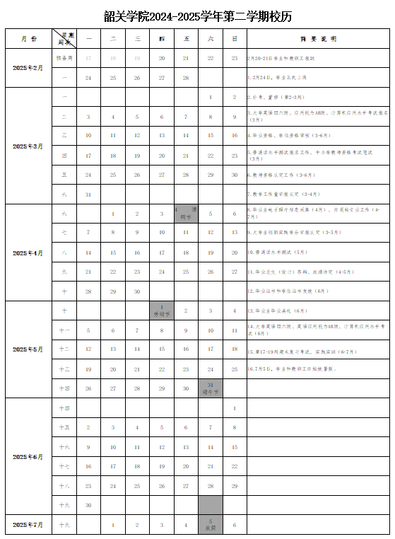 024-2025学年校历