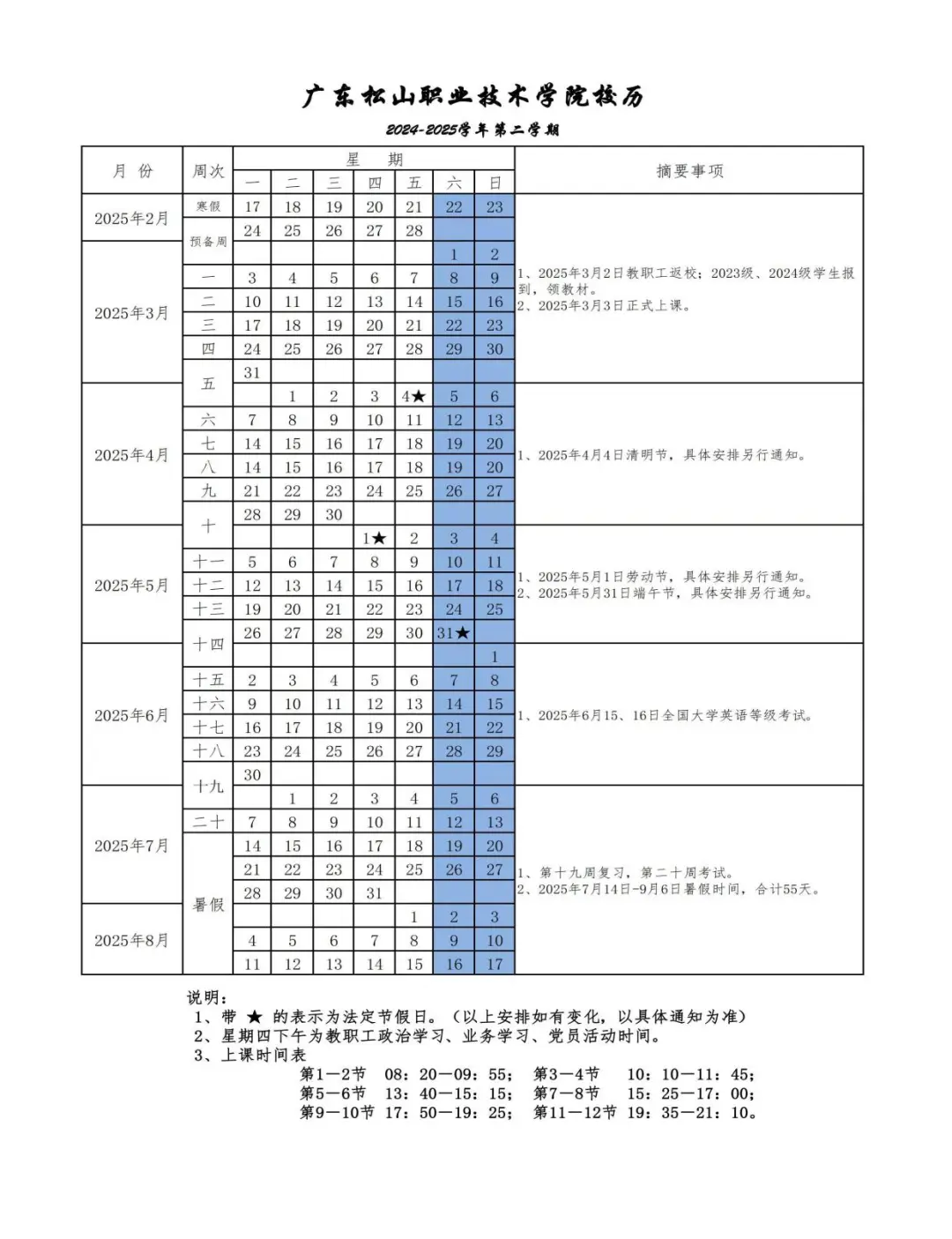 春季学期开学:2025年2月13日