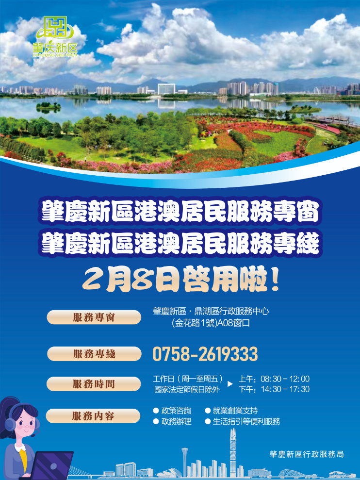 该服务专窗及电话专线将为肇庆新区港澳居民提供政策咨询、就业创业支持、政务办理、生活指引等便利服务,着力解决肇庆新区范围内港澳企业居民跨领域、跨部门、跨层级的问题和诉求,推动区域融合发展、创新跨境服务方式以及促进文化交流与融合。