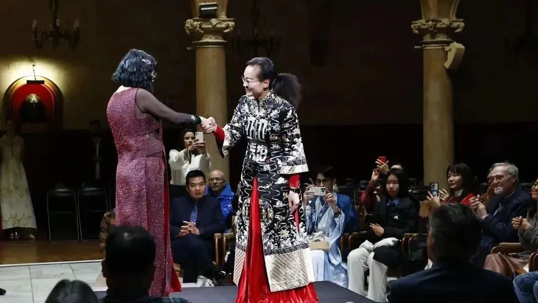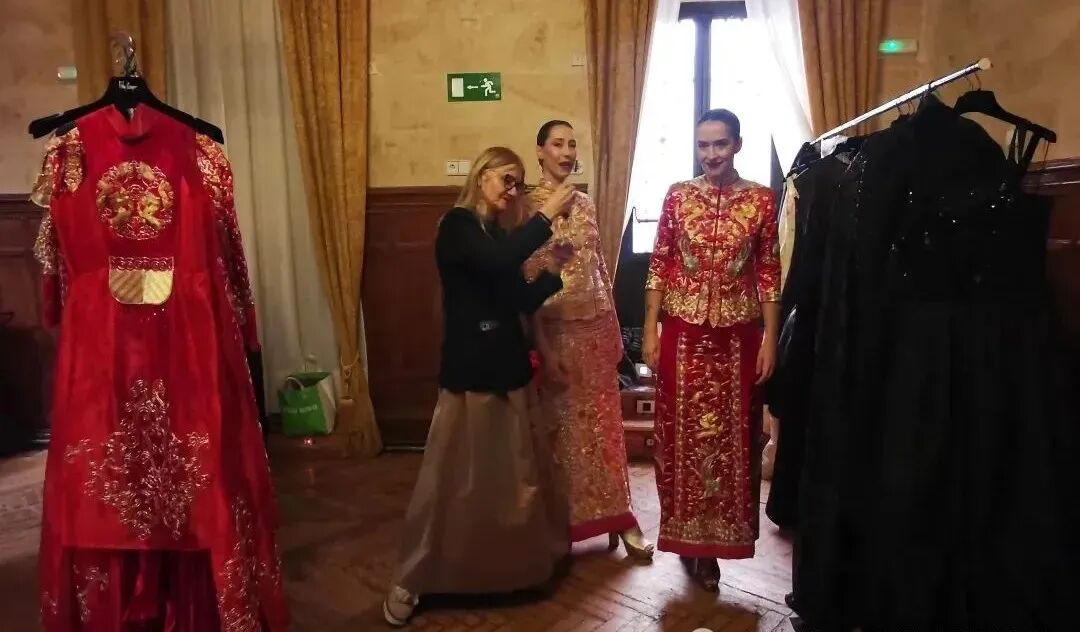 在此次西班牙文化之旅中,唐志茹带着中国传统嫁衣踏上萨拉曼卡的舞台,呈现了一场中西互融的精彩T台秀。秀场上,中式传统嫁衣的独特魅力与西方时尚元素碰撞出绚丽火花,充分展现了中国传统文化的深厚底蕴和独特魅力。