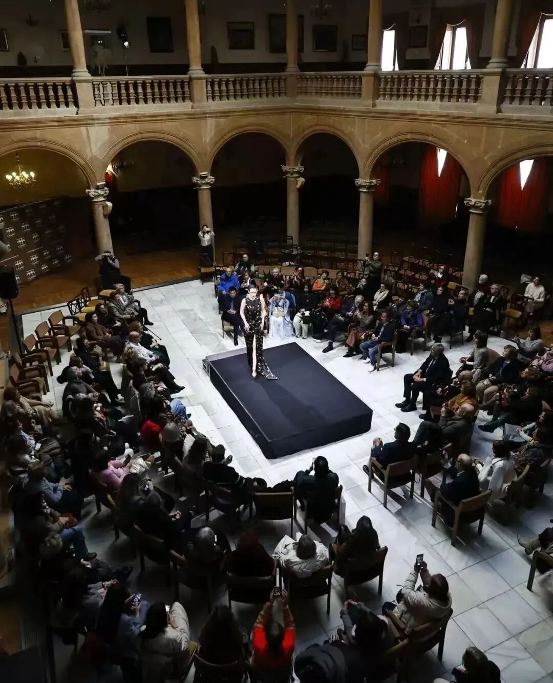 萨拉曼卡模特身穿钉金绣裙褂走秀