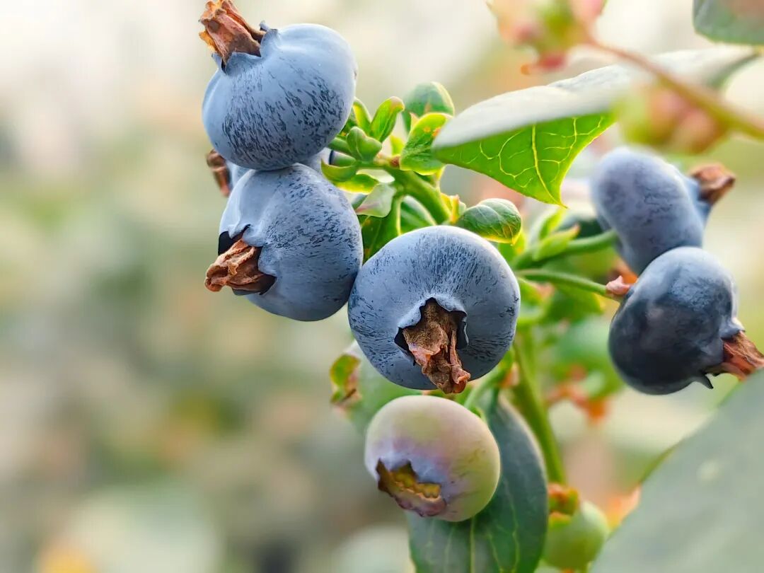 “这里是位于长来镇安口村樟树王公园旁的蓝莓园种植基地,经过九个月的精心培育,今天迎来了首批蓝莓采摘,成熟后的蓝莓犹如蓝宝石果型饱满、脆甜可口。”记者走进温室大棚内,看到株株蓝莓树生机盎然,嫩绿的枝头上果实青、蓝交辉,采摘人员忙碌地穿梭蓝莓丛间,把顶果采摘下来,不仅喜获首次丰收,还能去掉顶端优势,帮助养分回流促进全株果实加快成熟。