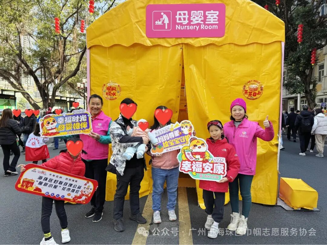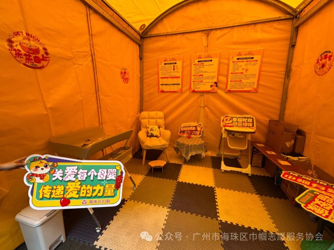 为切实关照携带婴幼儿前来花市游玩的家庭,提供贴心便捷的惠民服务,带来更为温馨舒适的花市体验。2025年1月26日,海珠区妇联、海珠区巾帼志愿服务协会在海珠区迎春花市内搭建的母婴室正式启用,其中配备婴儿护理设施及哺乳休息区,为海珠花市提供为期三天的暖心服务,让每一位家长与宝宝在新春氛围中感受浓厚的巾帼关怀与温暖。