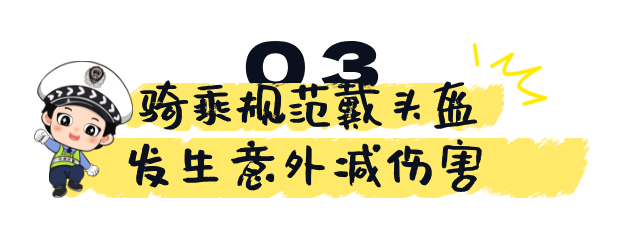 乘坐电动自行车,或符合年龄后驾驶电动自行车,一定要正确佩戴符合3C认证的安全头盔。安全头盔可在事故发生时,有效保护骑乘人员的头部,最大程度降低骑乘人员的伤亡后果。