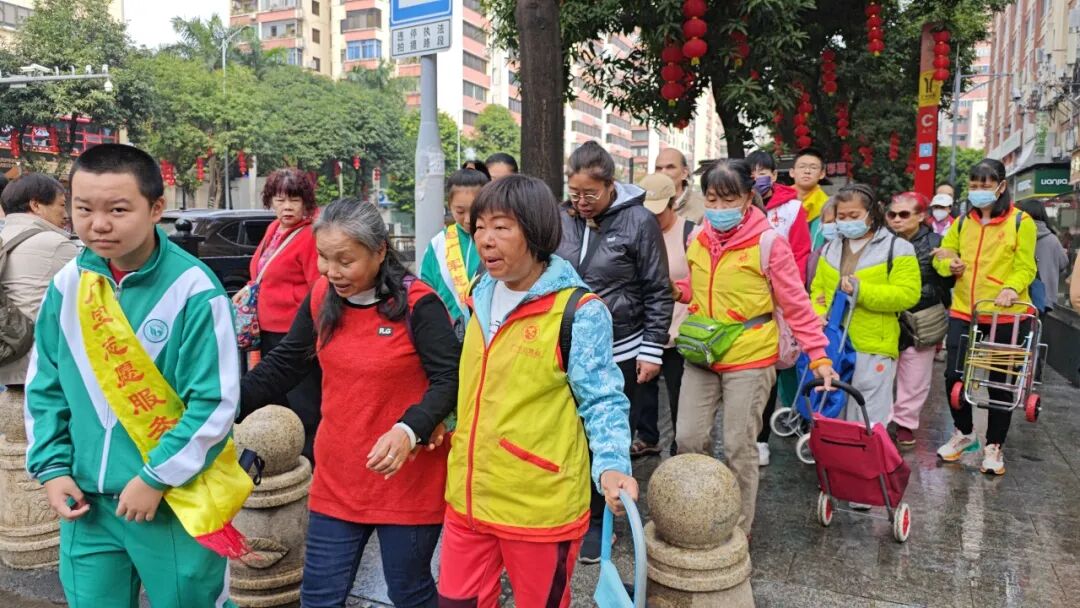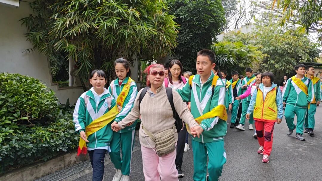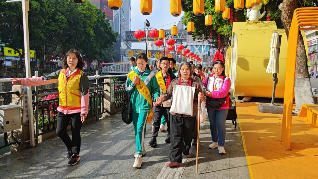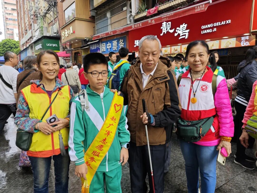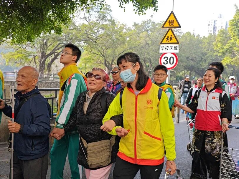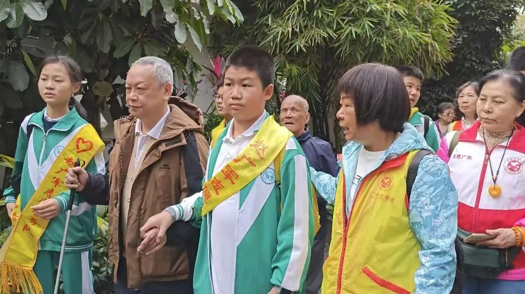 赵广军志愿服务总队的初老志愿者与学生志愿者在江南西地铁站一对一陪伴视障长者前往晓港公园。在游园环节,大家漫步于晓港公园,学生向长者描述沿途的风景,欣赏自然风光,让长者通过听觉和触觉感受自然之美。