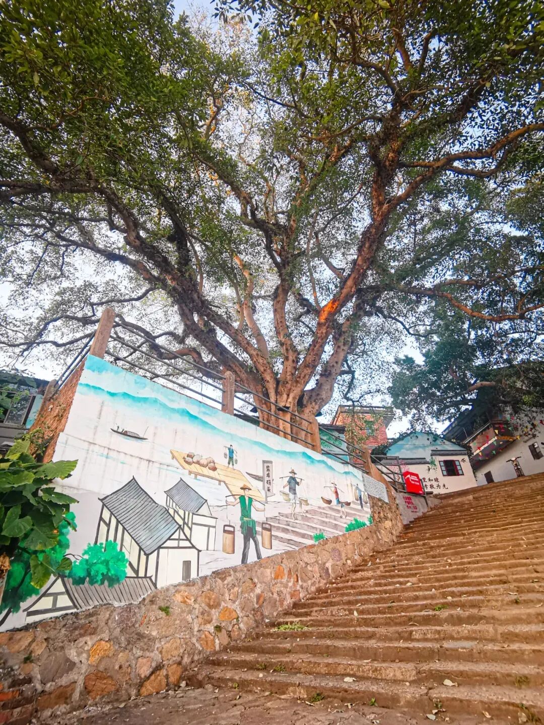 漫步于禄步骑楼街,直至禄步客运码头的旅程,一幅幅栩栩如生的墙绘让游人仿佛亲身游历于江河、码头与船只的变换景致中,古埠文化的深厚底蕴在此得以完美诠释与展现。码头坐落于一片开阔地带,四周环绕着郁郁葱葱的青山与碧波荡漾的绿水,构成了一幅令人心旷神怡的自然画卷。这里成为了众多市民与游客心仪的休憩之地,他们乐于在此悠然落座,沉浸于这份宁静与慢生活,细细品味时光的悠长韵味。