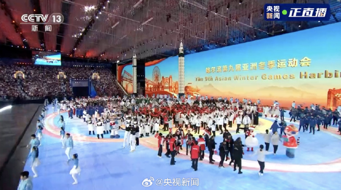 2月14日晚,第九届亚洲冬季运动会闭幕式在黑龙江省哈尔滨市举行。