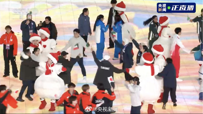 各国运动员手拉手转圈圈