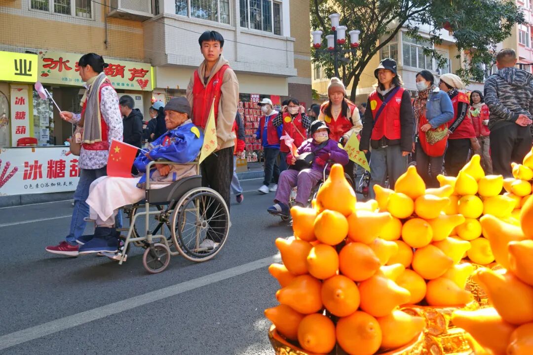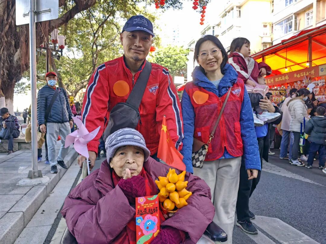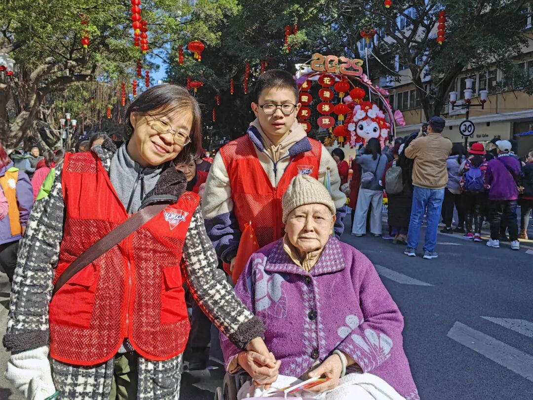逾百位义工在结束甲辰年最后一个工作日后,本可以轻松享受个人的休暇时光、忙碌自家的过年事务,却因牵挂常年服务的长者和义工伙伴,选择马不停蹄从四面八方奔向慈爱养老院欢聚,或帮忙搞卫生、贴春联,或探访院舍长者,送上热辣滚烫的新春祝福;随后按“二对一”比例,悉心陪护鲜少出门的长者行花街,用万紫千红祝福长者长寿安康,为喜庆的海珠迎春花市增添一道温暖人心的风景线。