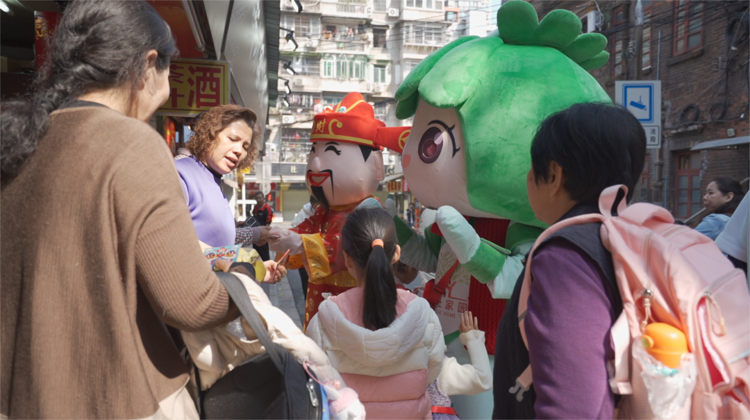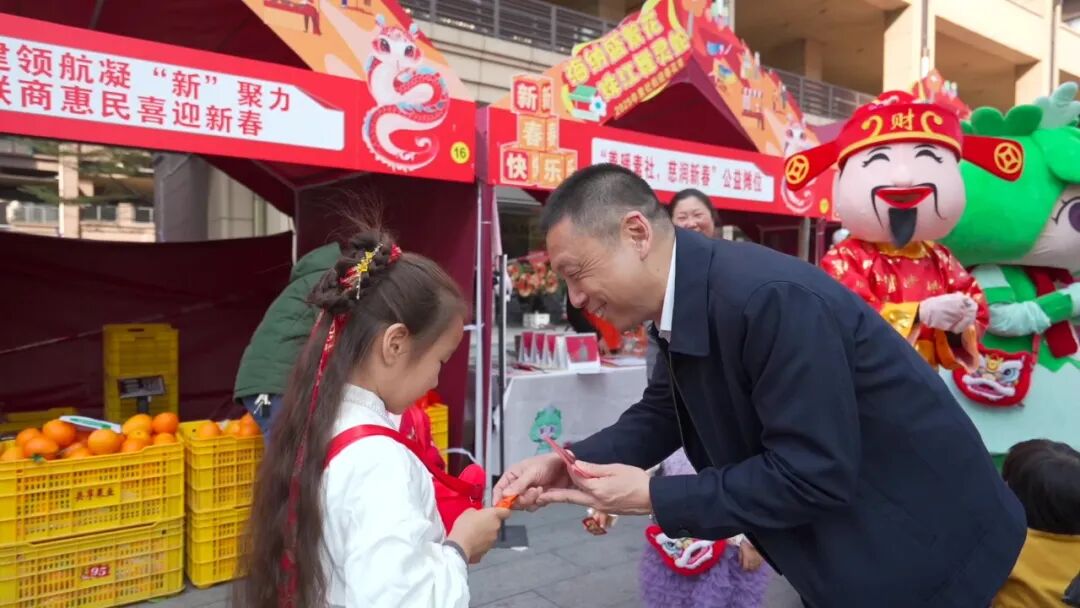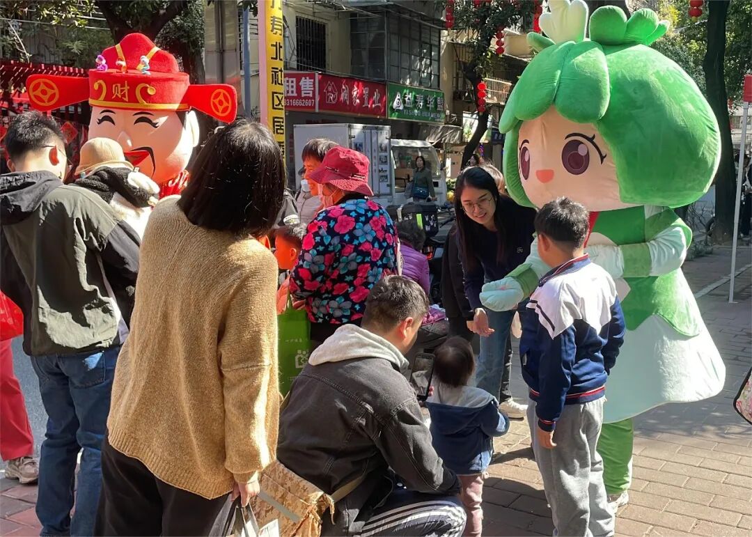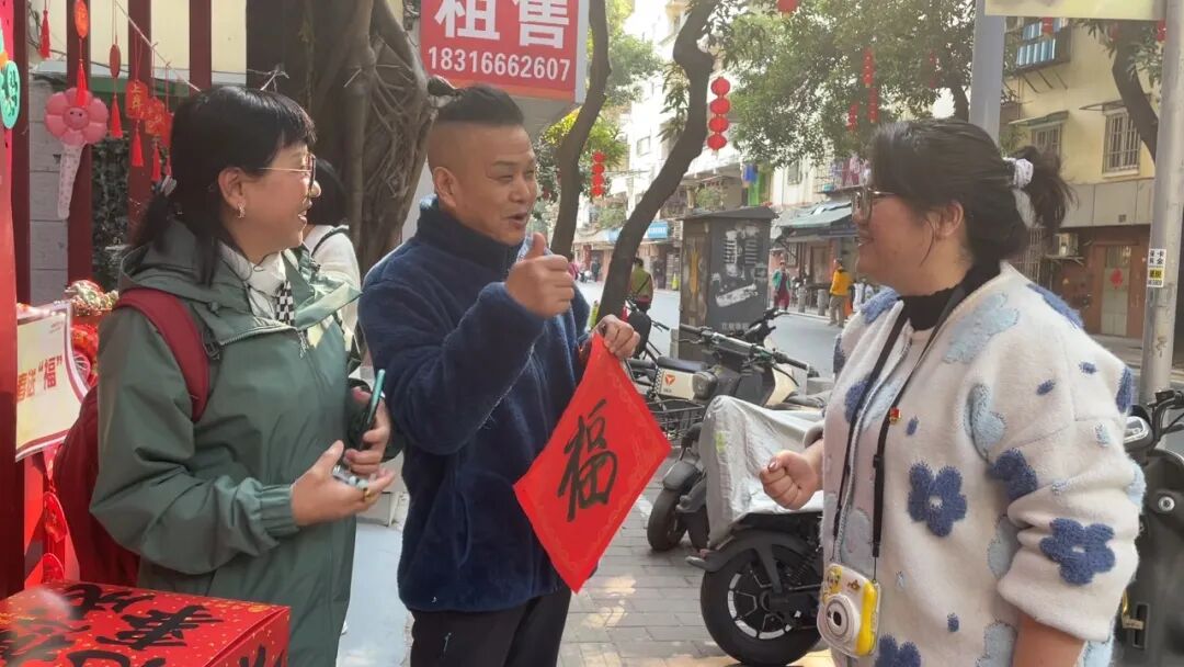 作为送福星,他们手捧新春福袋,用稚嫩却洪亮的声音向商户和居民送上真挚祝福:“叔叔阿姨,新年快乐!”居民和商户们被这突如其来的温暖深深打动,接过福袋时,毫不吝啬对孩子们的夸赞,还拿出糖水、糖果回赠,传递爱的祝福。商户王姐姐笑着说:“收到孩子们的祝福,新的一年肯定顺顺利利,生意也会越来越好!”