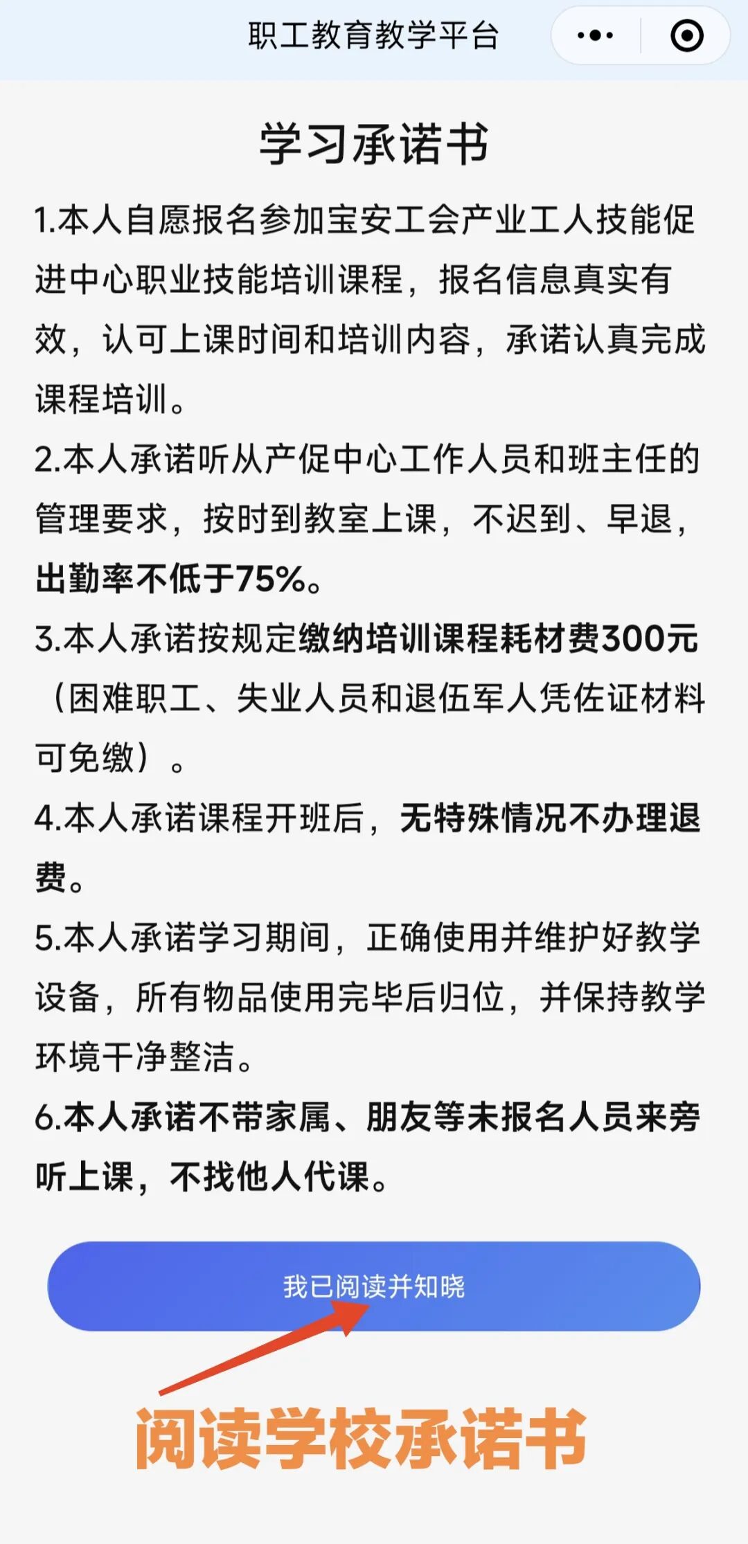 阅读学习承诺书