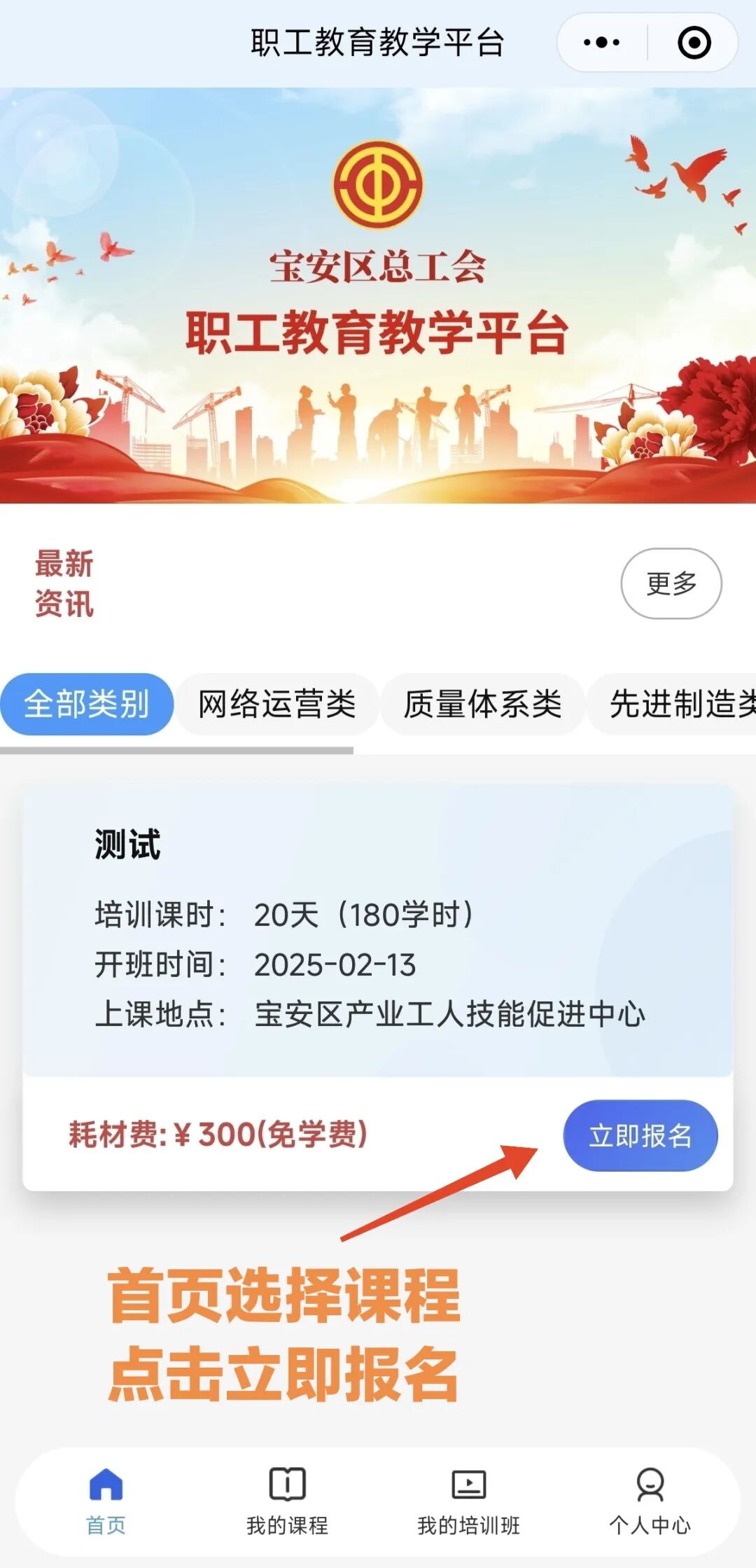1.2025年技能培训课程,按照季度发布课程招生通知,请大家持续关注“宝工产促”微信小程序。