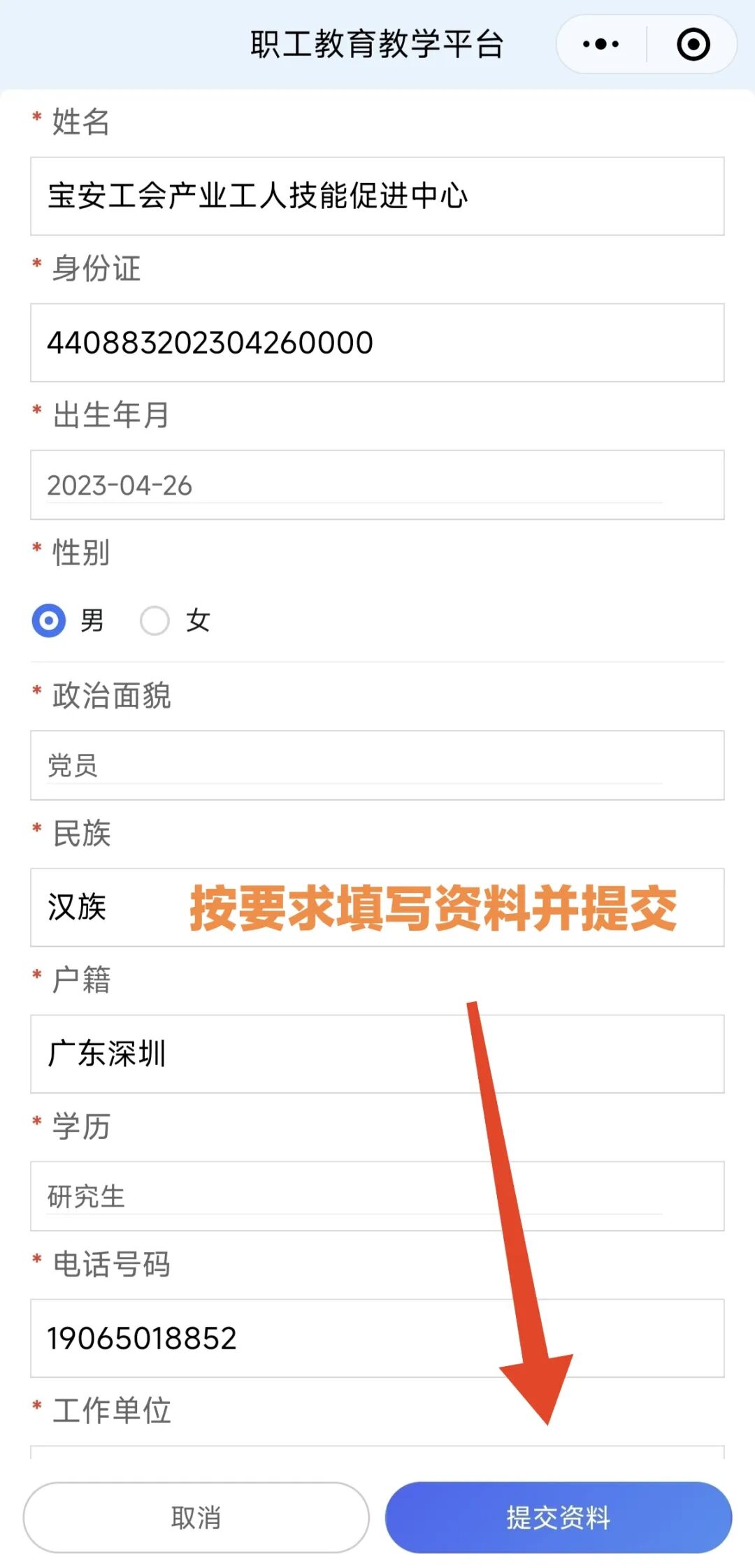 资料填写