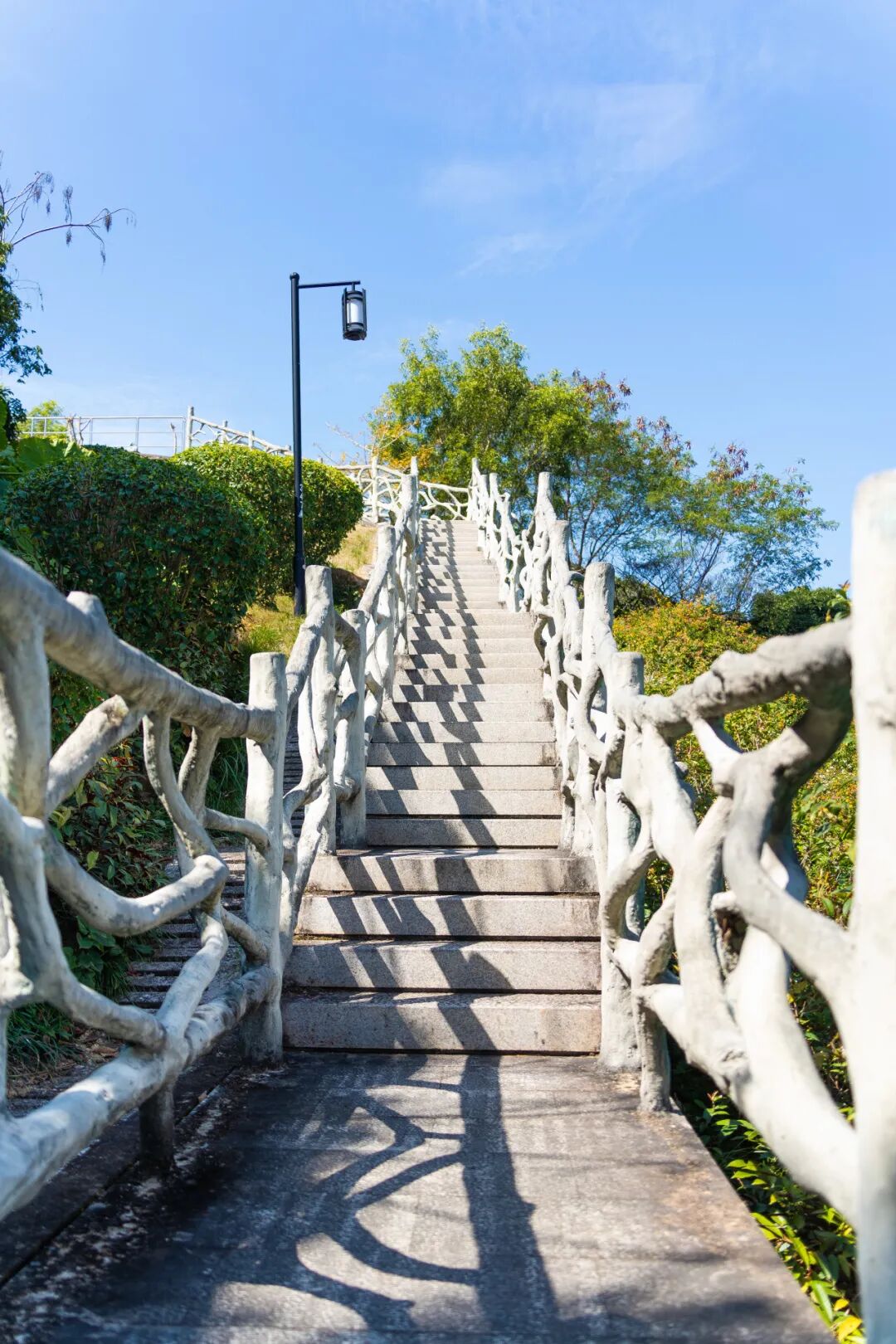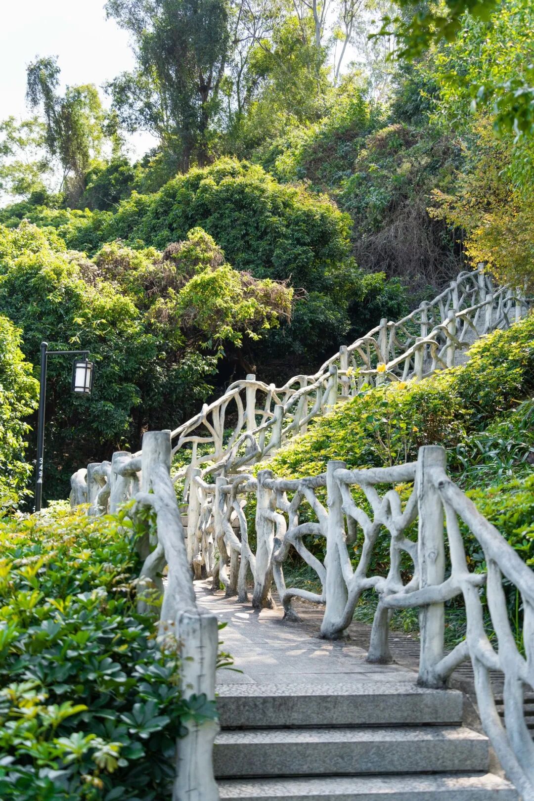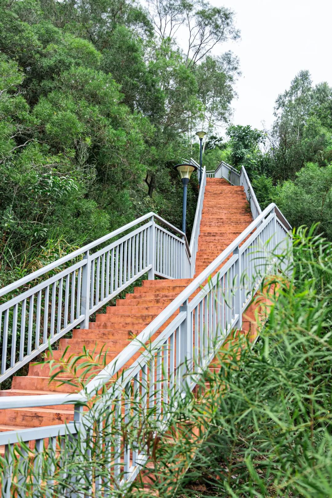 从企龙山公园下山后,我们来到了附近有名的尖岗山公园,沿着1000级阶梯栈道一路向上,俯瞰宝安最大的富人别墅群。