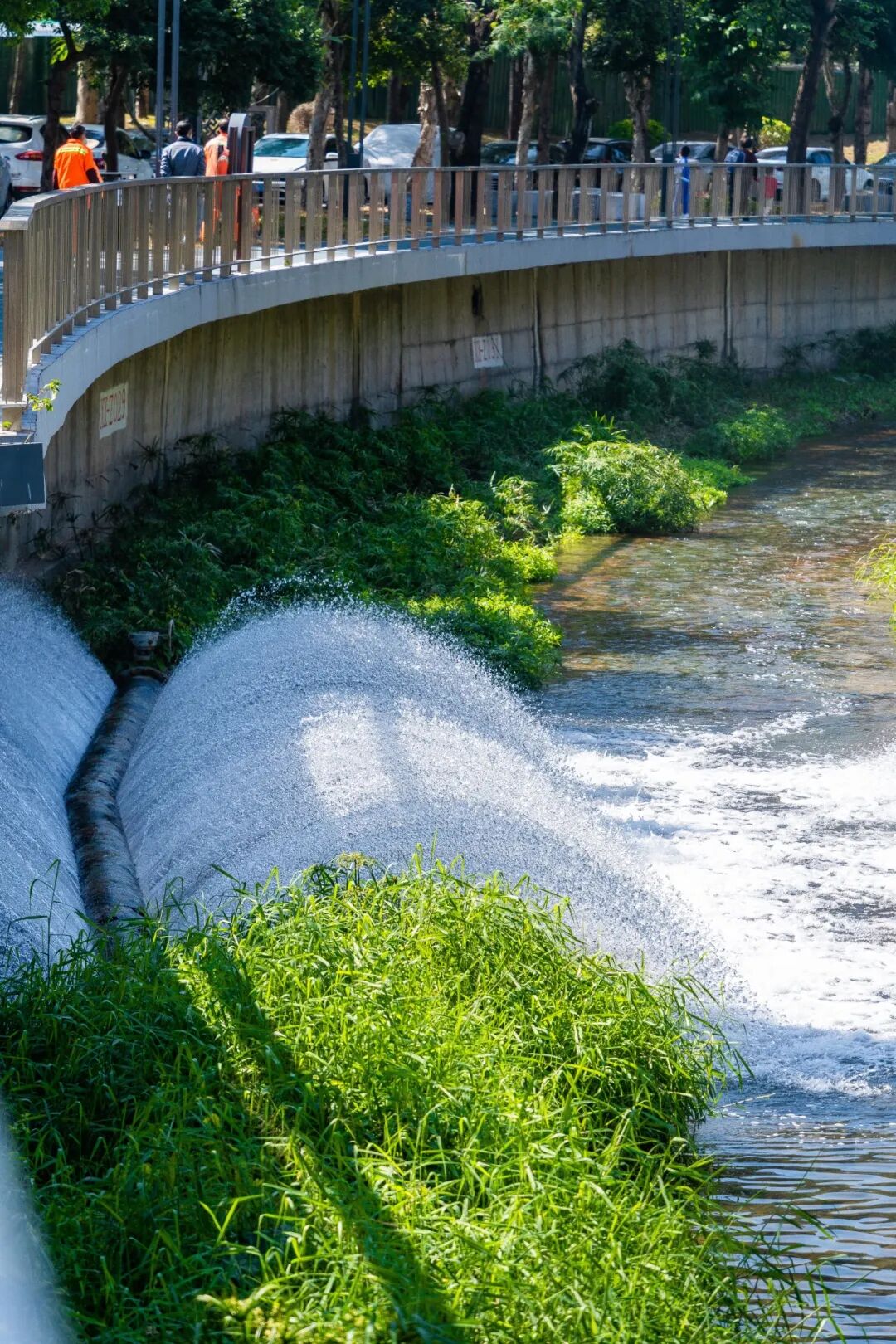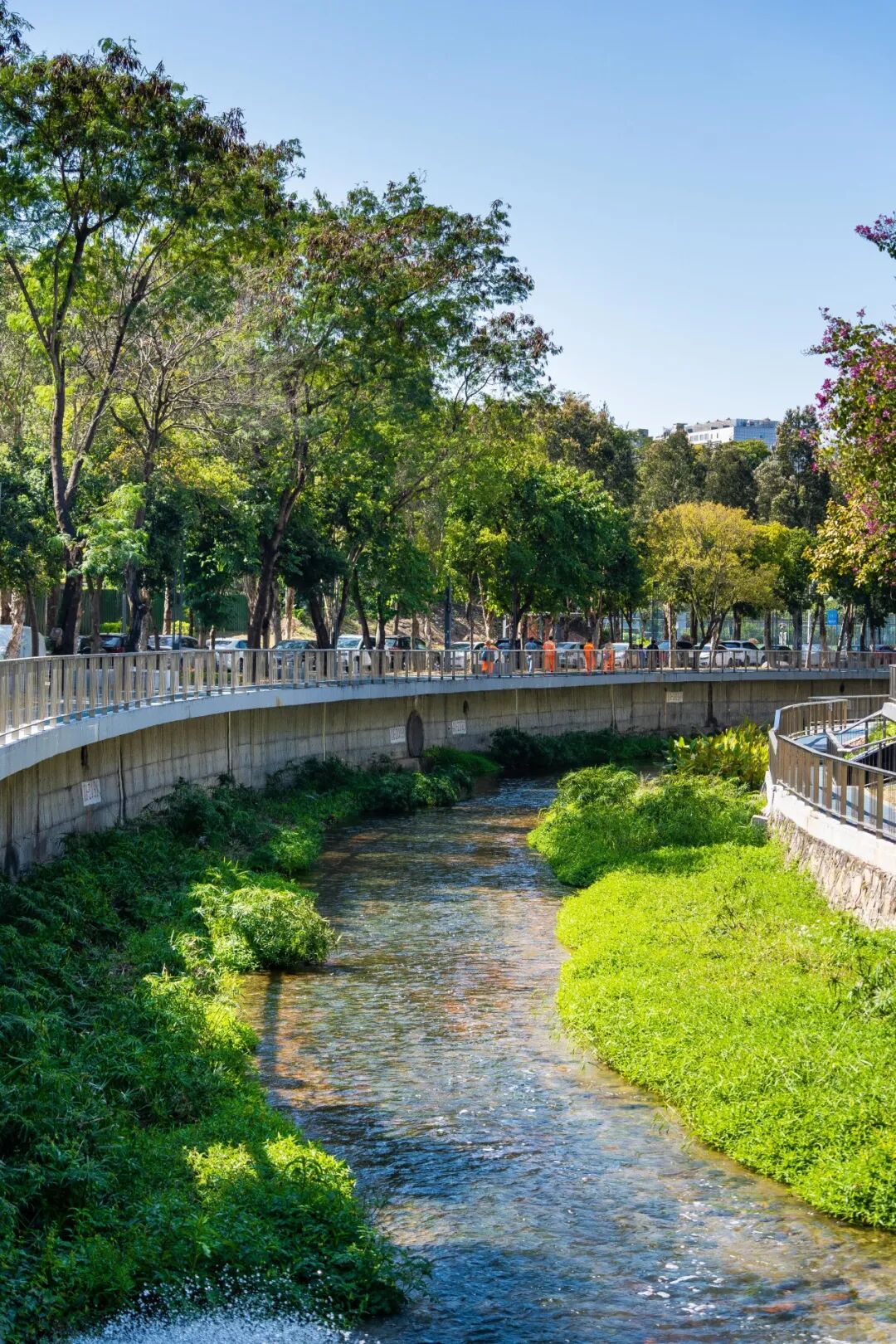 从铁岗水库西门出来,我们来到了宝安人熟悉的西乡河碧道,北起铁岗水库,南汇入前海湾,全长7.64km,可以玩水、钓鱼、徒步、骑行。