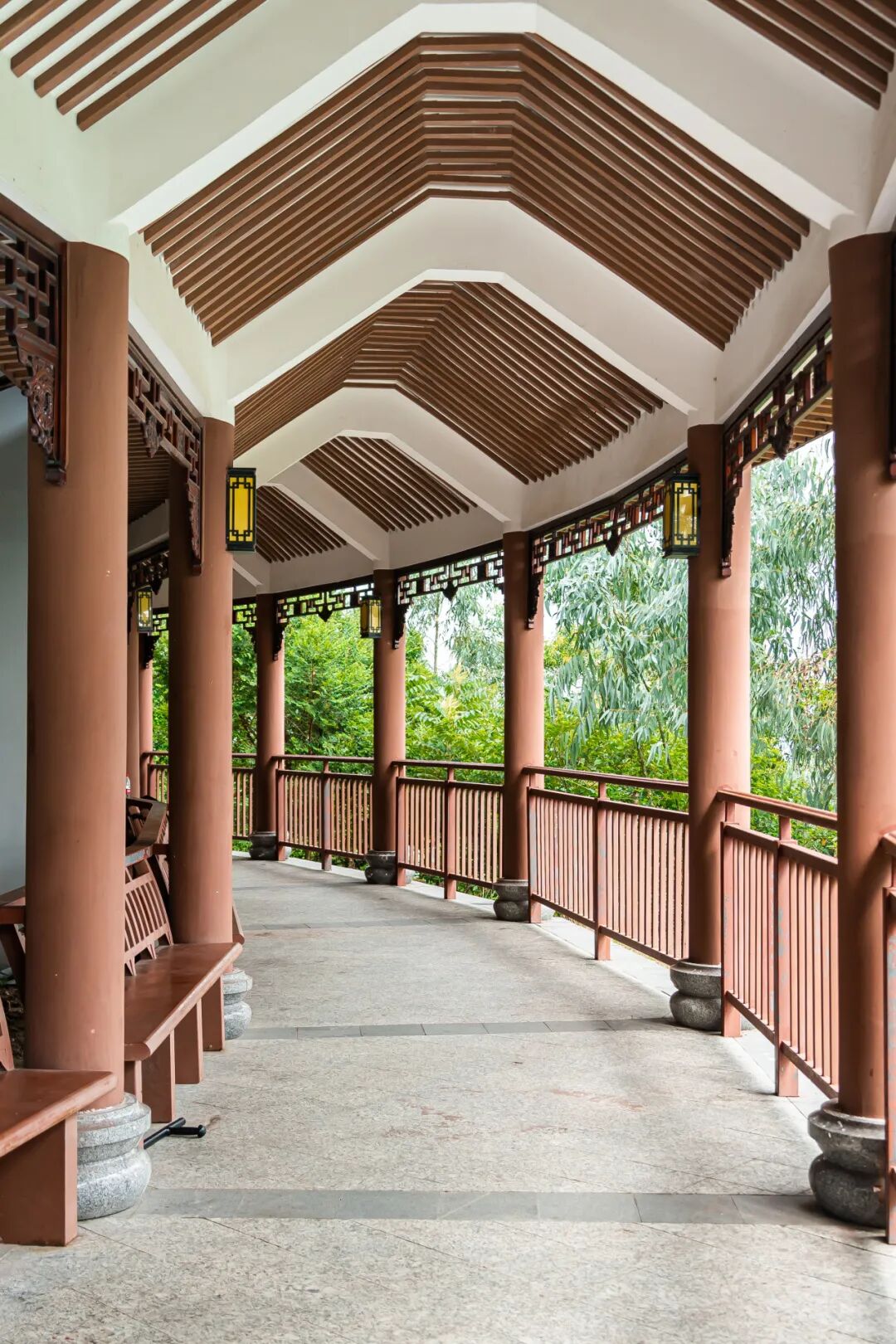 山顶则是神秘的连廊围楼建筑,连廊长达百米,古色古香,是游人休息的好去处。