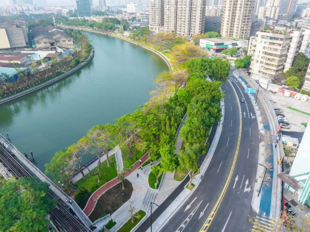 2024年,荔湾区结合花地河东侧道路(浣花西路—茶滘涌)拓宽工程,先行实施花地河示范段滨水环境整治工程,着力建设1.38公里精品示范碧道,打造荔湾南片滨水环境典范。项目通过开展三道贯通、节点塑造、绿化美化、功能照明、文化标识等,对沿岸滨水环境进行优化提升,为沿岸居民营造更加舒适、安全的滨水生活环境,不断提升荔湾人民的获得感和幸福感,实现“老花埭新活力”。目前,项目正在抓紧建设,计划2025年春节前基本完工并对外开放。