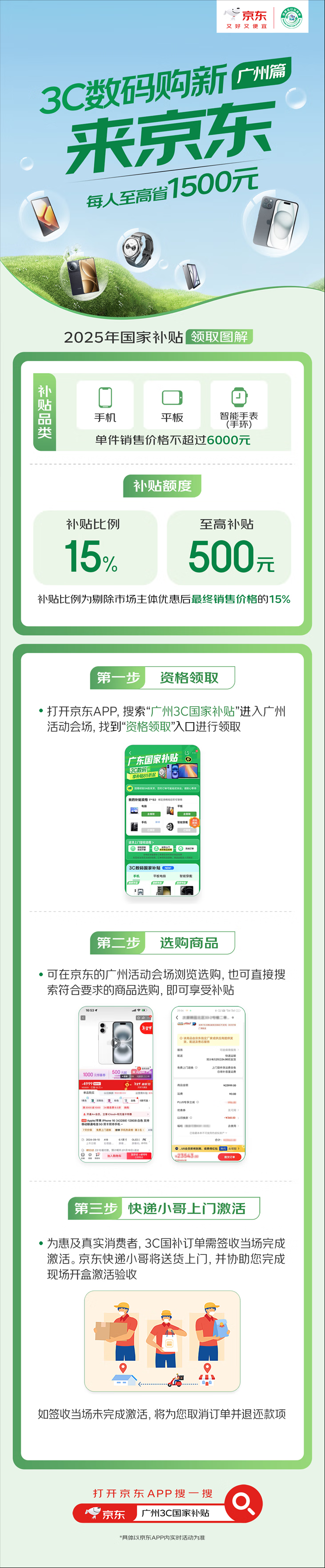 广州市手机、平板等数码产品购新补贴活动正式上线京东。为满足广大消费者对于手机数码产品换新需求,京东联合厂商已提前备足超千万件手机、数码国补商品。同时,京东携手小米、荣耀、华为、OPPO、一加、红魔、真我、努比亚、三星、魅族、联想moto等厂商发起国补换新行动,带来众多的旗舰手机、数码爆品,确保消费者在享受国家补贴的同时,能够拥有更丰富、多元的产品选择,以及更多产品专属权益。