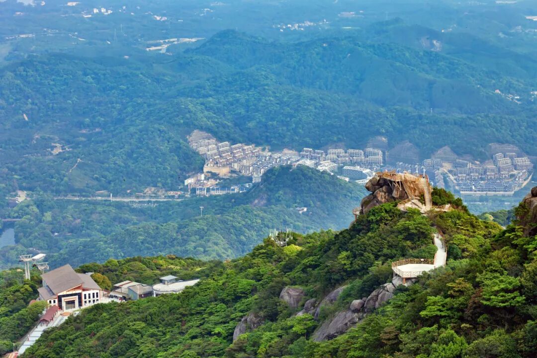 从鹰嘴岩继续往上,就只能步行啦,沿登山栈道约2小时可到罗浮山最高点飞云顶1296米。