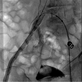 术中行右侧髂内动脉IBD及腹主动脉-双侧髂动脉瘤支架隔绝