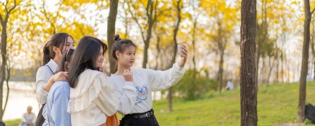 黄花风铃木林景区游玩的小伙伴