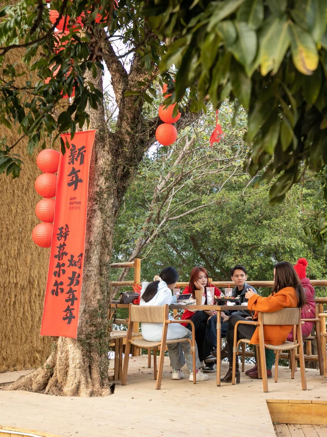 一边与好友聊天,共享休闲惬意时光。