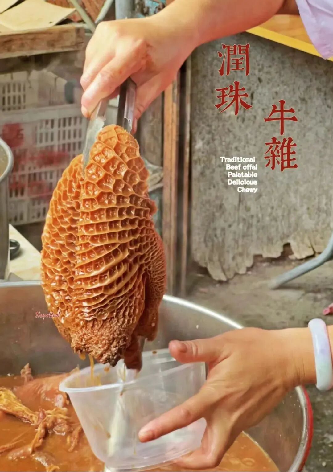 润珠牛杂店,位于市井小巷,路过这家店面,翻滚飘香的牛杂,会让你一秒感受到广式生活的惬意。一口咬下去,软糯弹牙,鲜嫩爽滑,搭配着秘制汤汁,堪称一绝。别小看这一碗牛杂,它可是放学路上的解馋小吃,是下班途中的温暖慰藉,在老广心中有着“举足轻重”的地位。
