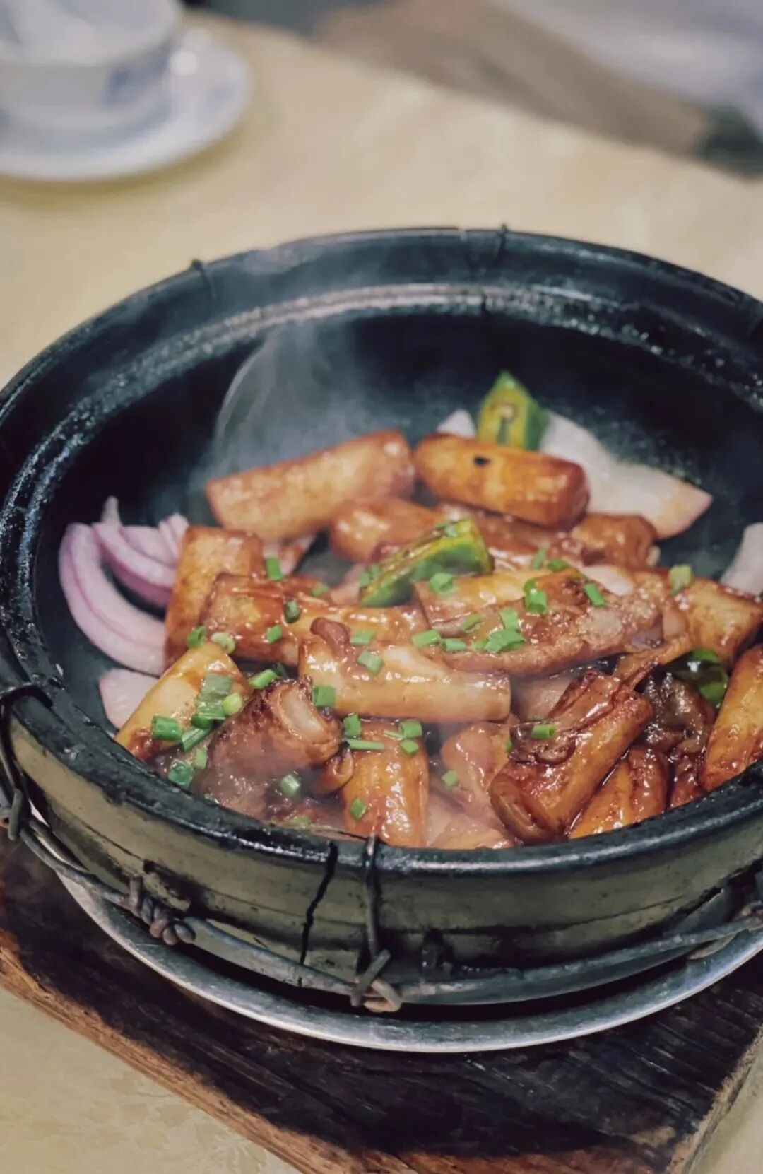 ·慈姑莲藕焖火腩:将慈姑、莲藕与火腩(烧肉)一起焖煮,口感软糯,味道醇厚。