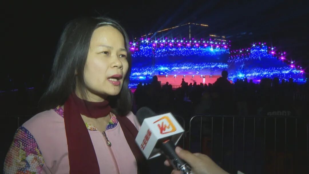 观众 陈女士:我觉得今晚的舞台效果绝美,灯光五光十色,音响效果好,舞台设计变幻多彩,我听到好听的演唱也会拿起手机录像。