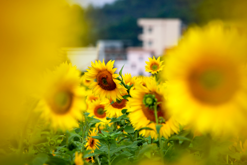 近日,罗定市罗平镇长岗坡渡槽下的向日葵花竞相开放,形成了一幅美丽的春日画卷,成为游客热门打卡地。